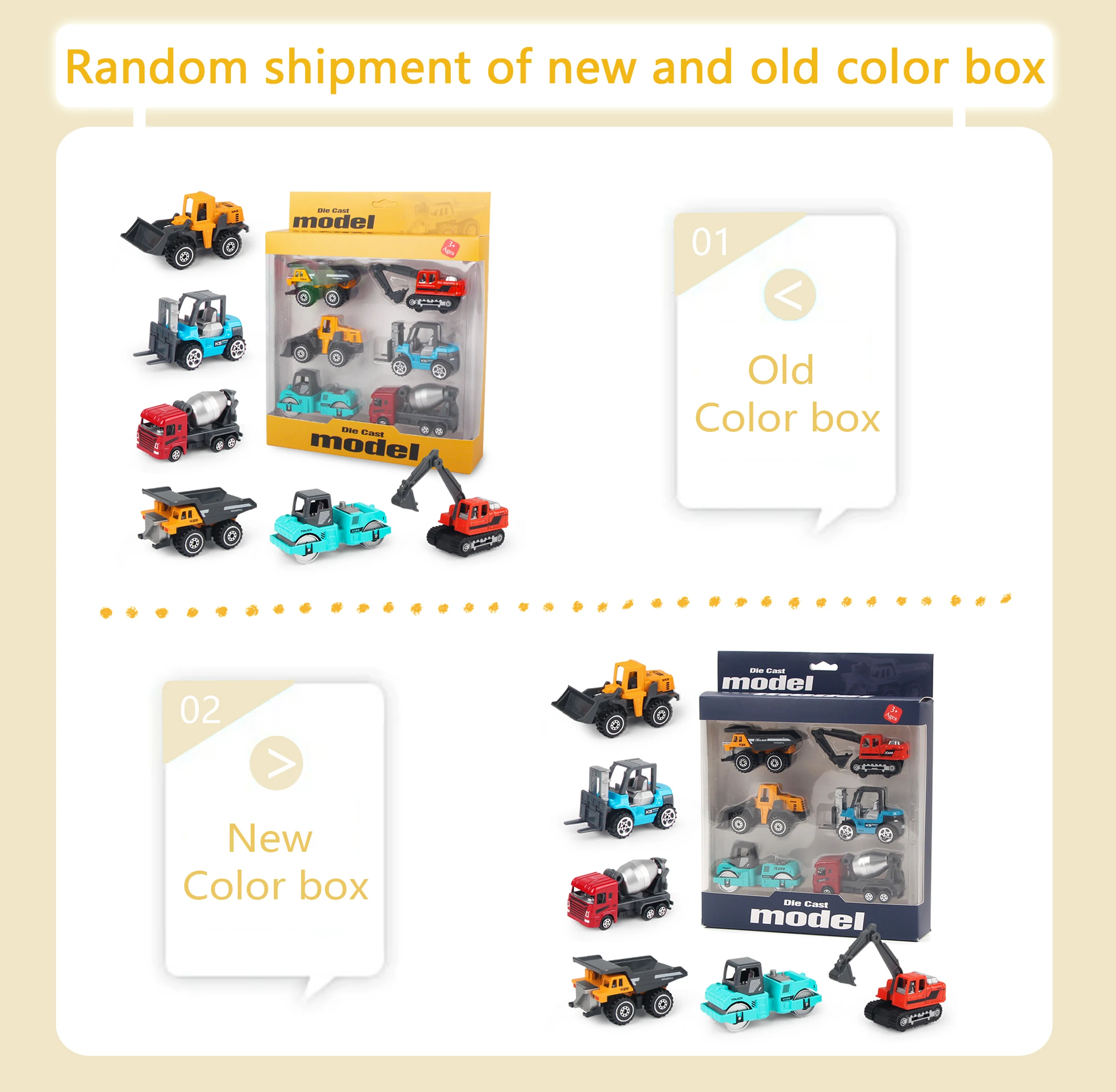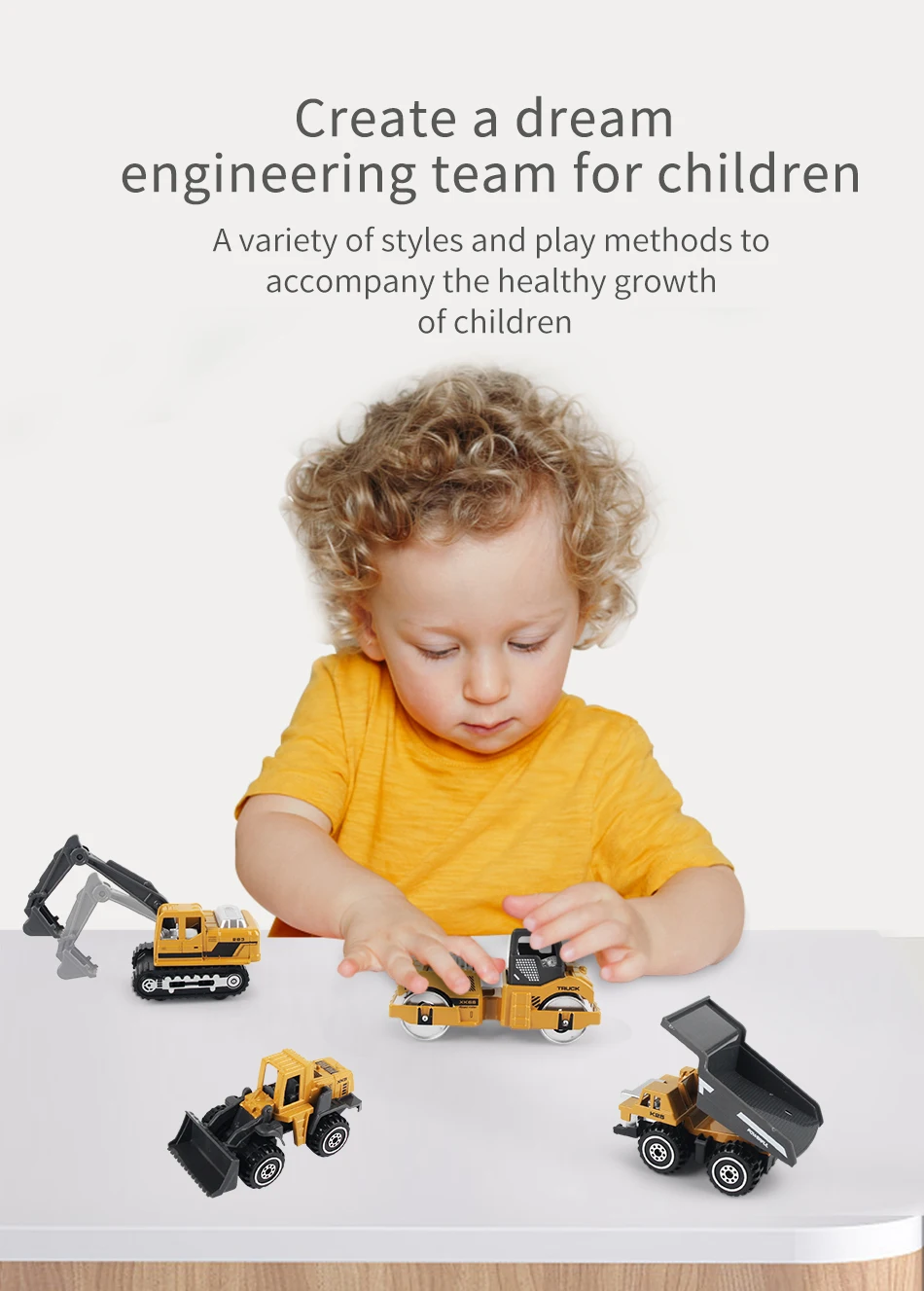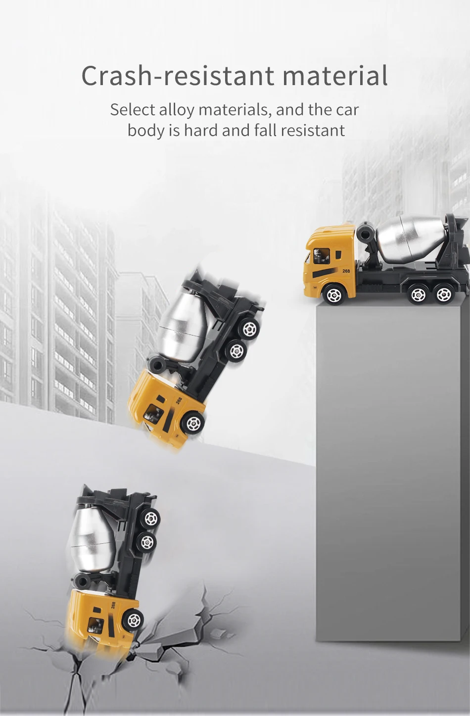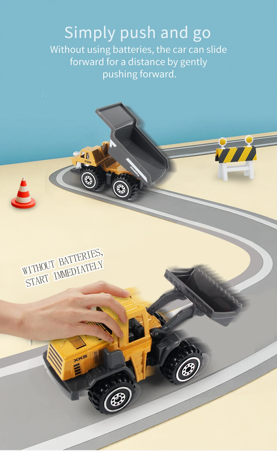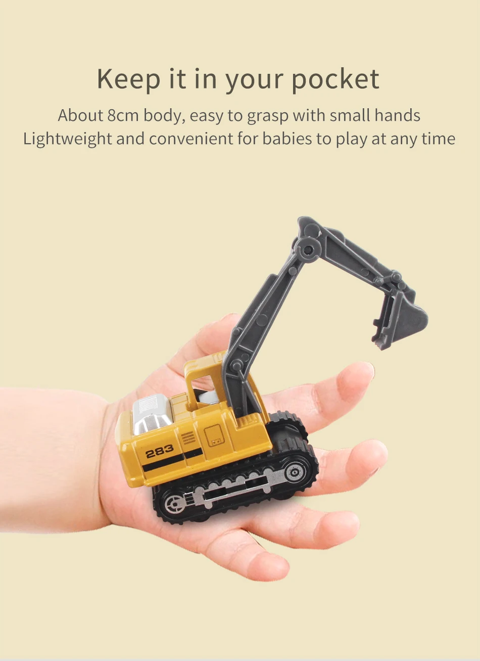 Material: metal & plasticSize: as picture showsSuitable age: 3+ years oldPackage includings: A/B: 6pcs/setC/D: Alloy Engineering Car *8Mat *1Road Sign *1set